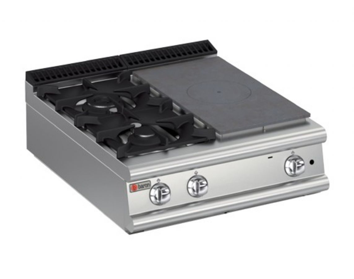 Plaque gaz de table à poser - 2 brûleurs vifs et 1/2 plaque coup de feu