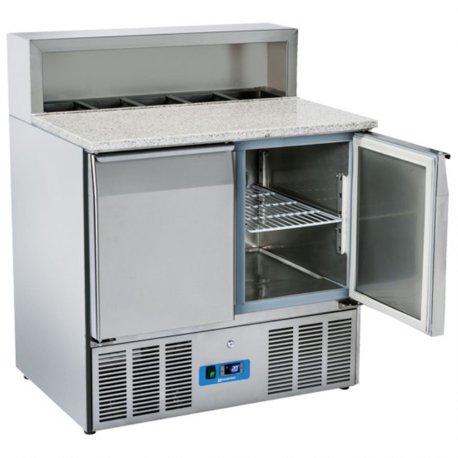 Table à pizza réfrigérée avec 2 portes GN 1/1 et dessus granite - saladette bacs GN 1/6 - 900x700x1100 mm