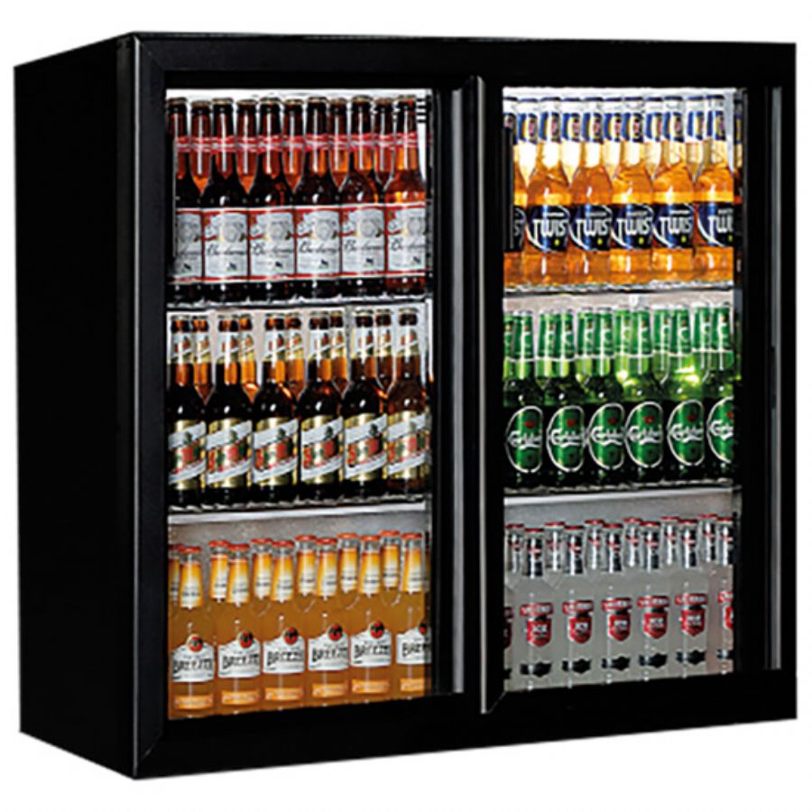 Arrière-bar positif noir avec 2 portes vitrées coulissantes - 925x520x900 mm