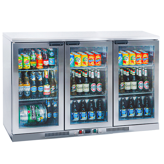 Arriere bar en inox avec 3 portes battante en verre 310 litres +2°/+12°C
