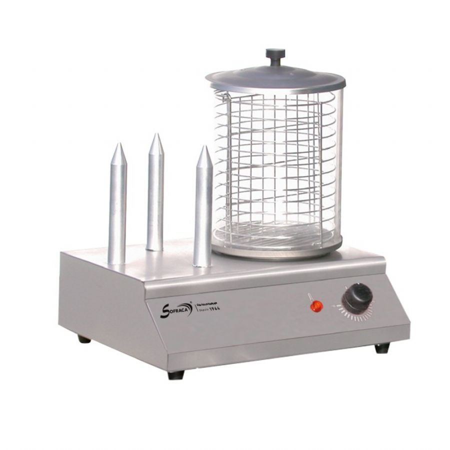 Chauffe saucisses avec conteneur à couvercle inox 3 plots - 120 pièces/h