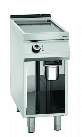 Fry-top électrique induction 1/3 strié 2/3 lisse sur coffre 2 portes 700 x 800 x 860 mm