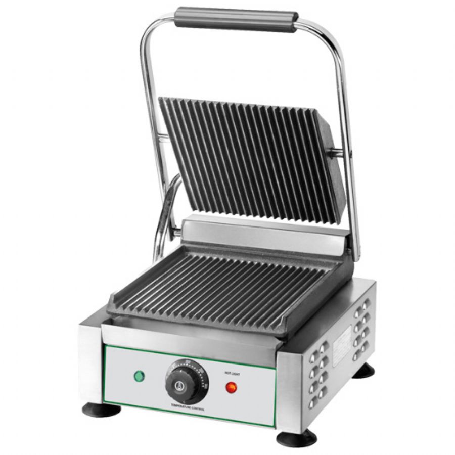 Grill Panini inox petit premium rainurée/rainurée avec minuteur - 300x490x265 mm