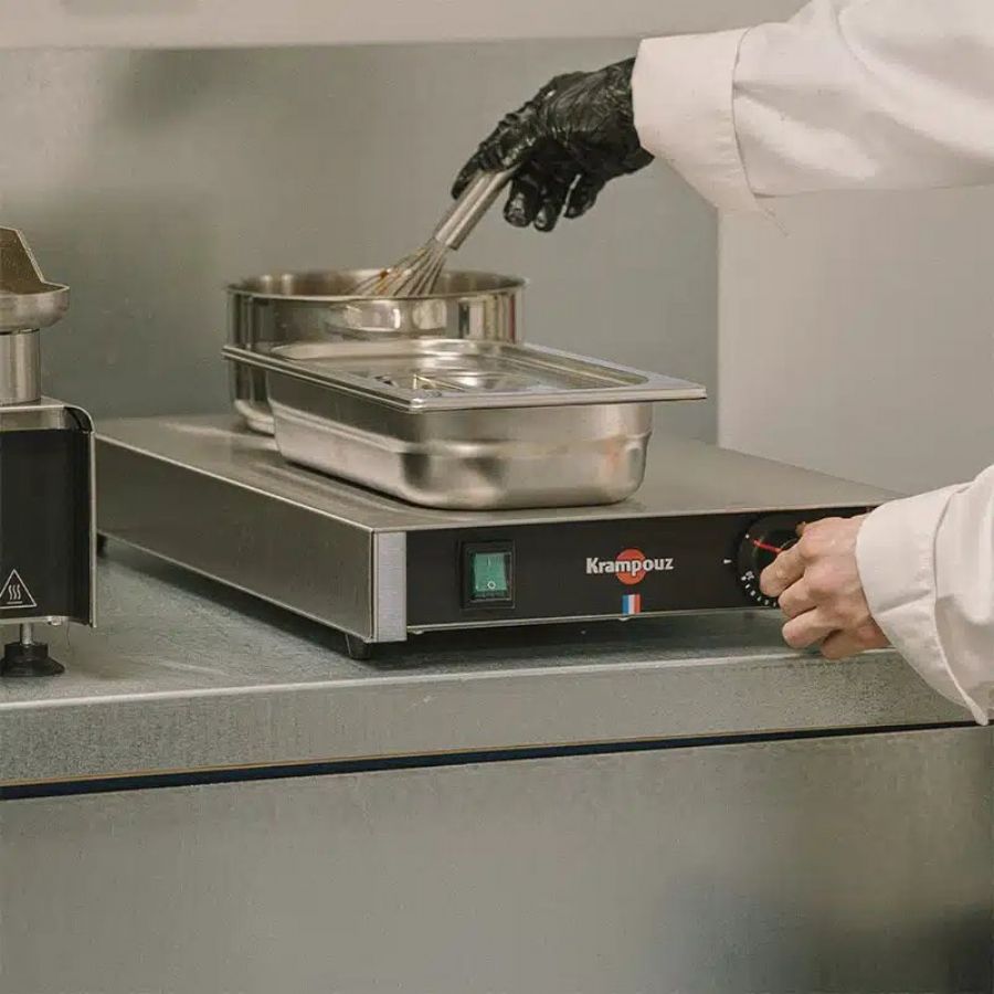 Le Réchaud électrique inox avec bacs GN de Krampouz offre une solution fiable et performante pour les cuisines professionnelles. Grâce à son design compact et sa conception en acier inoxydable, ce réchaud s’intègre parfaitement dans tout espace culinaire professionnel, garantissant une cuisson uniforme et efficace. Sa puissance de 500 W assure une performance optimale tout en respectant une fabrication respectueuse des normes exigées par l'industrie.