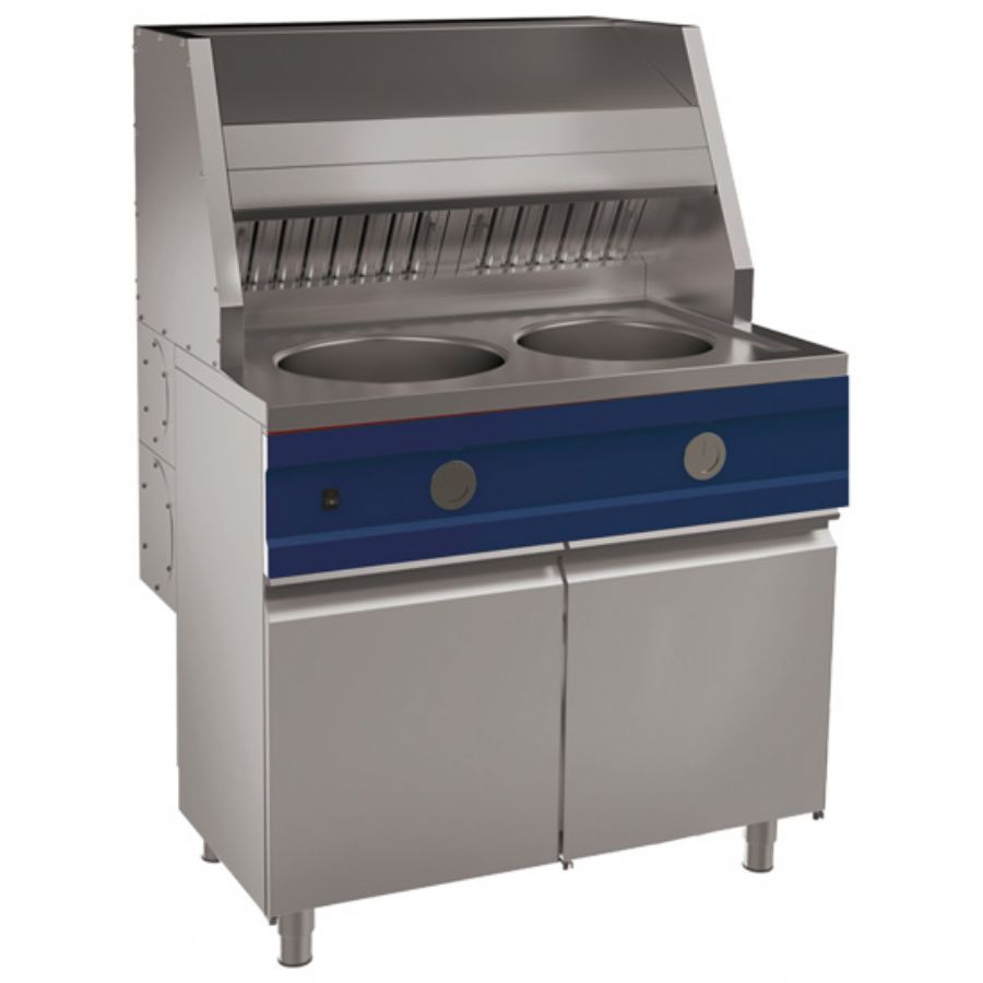 Friteuse professionnelle à gaz de 2x 13 litres sur meuble avec portes