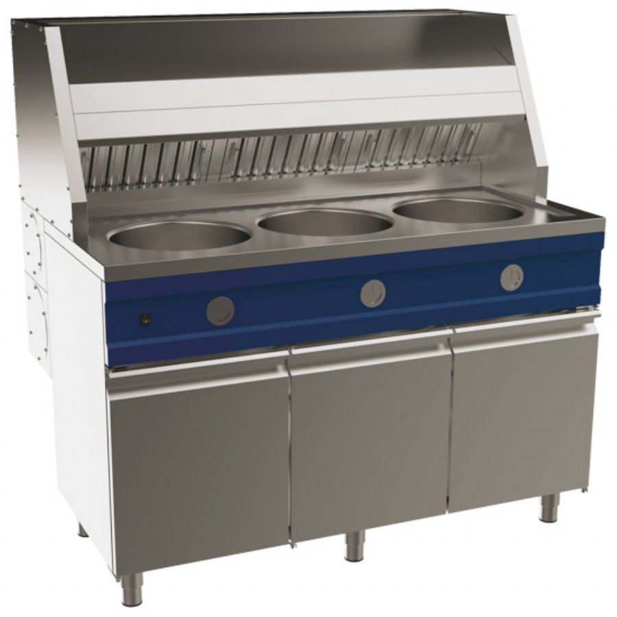 Friteuse professionnelle à gaz de 3 x 13 litres sur meuble avec portes