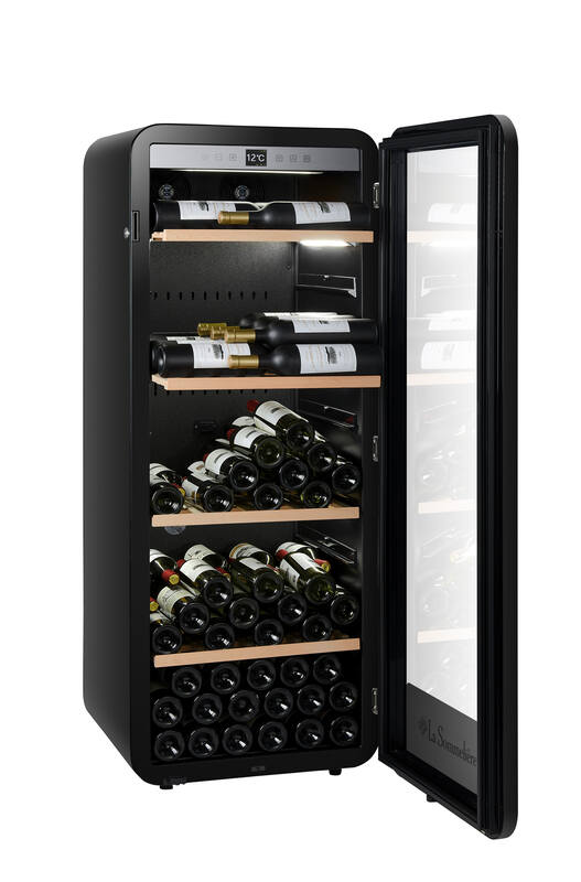 Cave à vin professionnelle noire bi-température avec une porte vitrée - 119 bouteilles