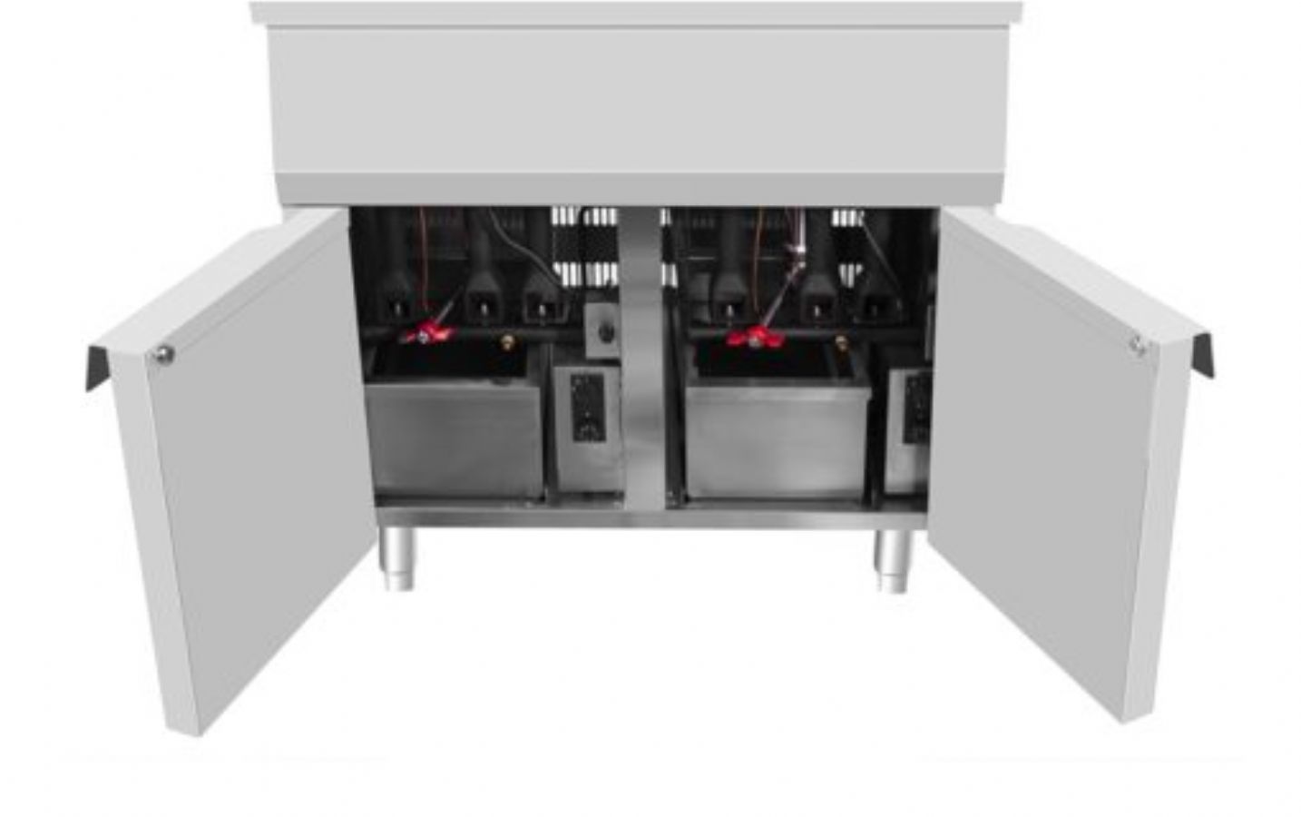 Friteuse gaz professionnelle sur meuble 2 portes battantes 2x15L - 800x700x850 mm