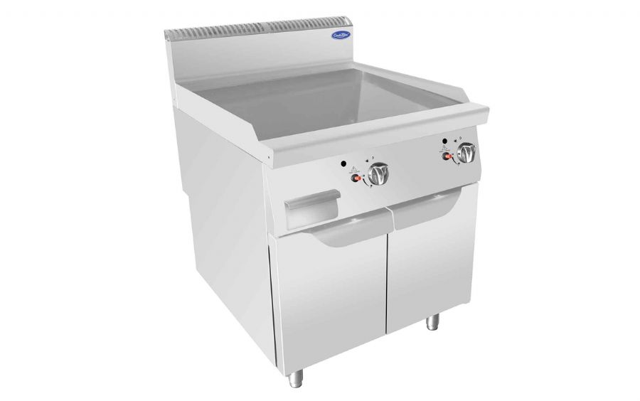 Plaque grill triphasé professionnelle 2 zones lisses sur coffre ouvert - 800x700x850 mm