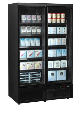 Vitrine murale négatif noire 2 portes 1006 L -18/-22°C - 1253x760x2003 mm