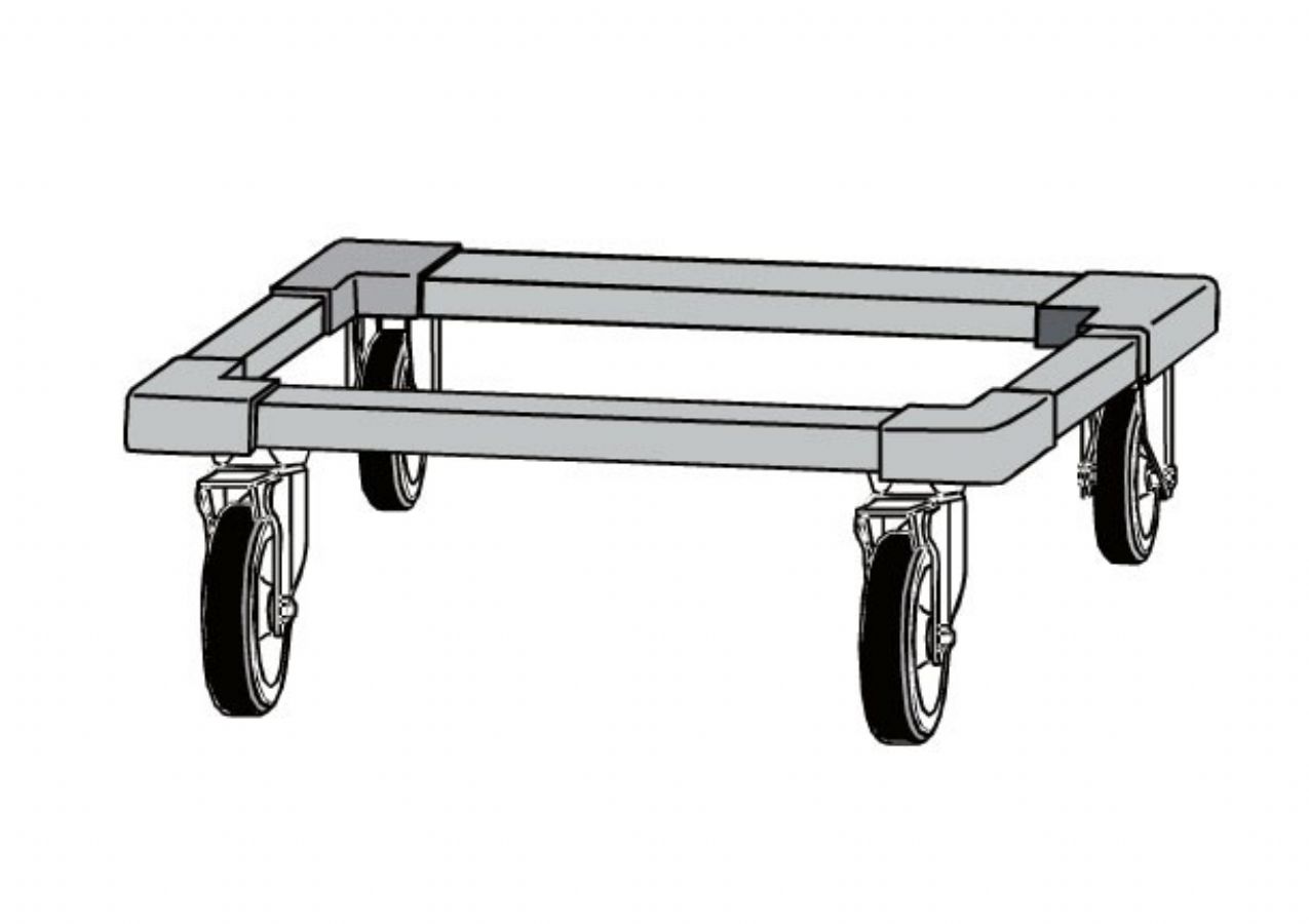 Châssis formé de 4 roulettes dont 2 avec frein, spécialement pour les armoires et tiroirs de maintien en température de Moduline.