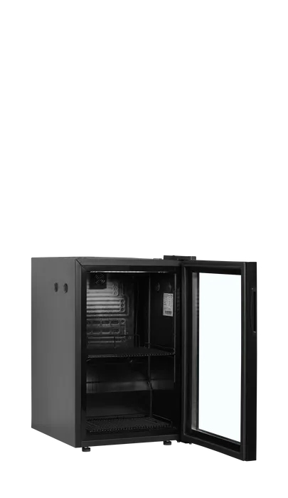 Réfrigérateur table top à boissons tout noir avec une porte vitrée battante 60 L - 432 x 496 x 668 mm