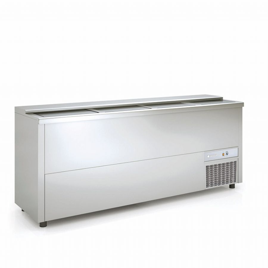 Refroidisseur à bouteilles et cannettes inox avec 4 portes coulissantes - 580 litres