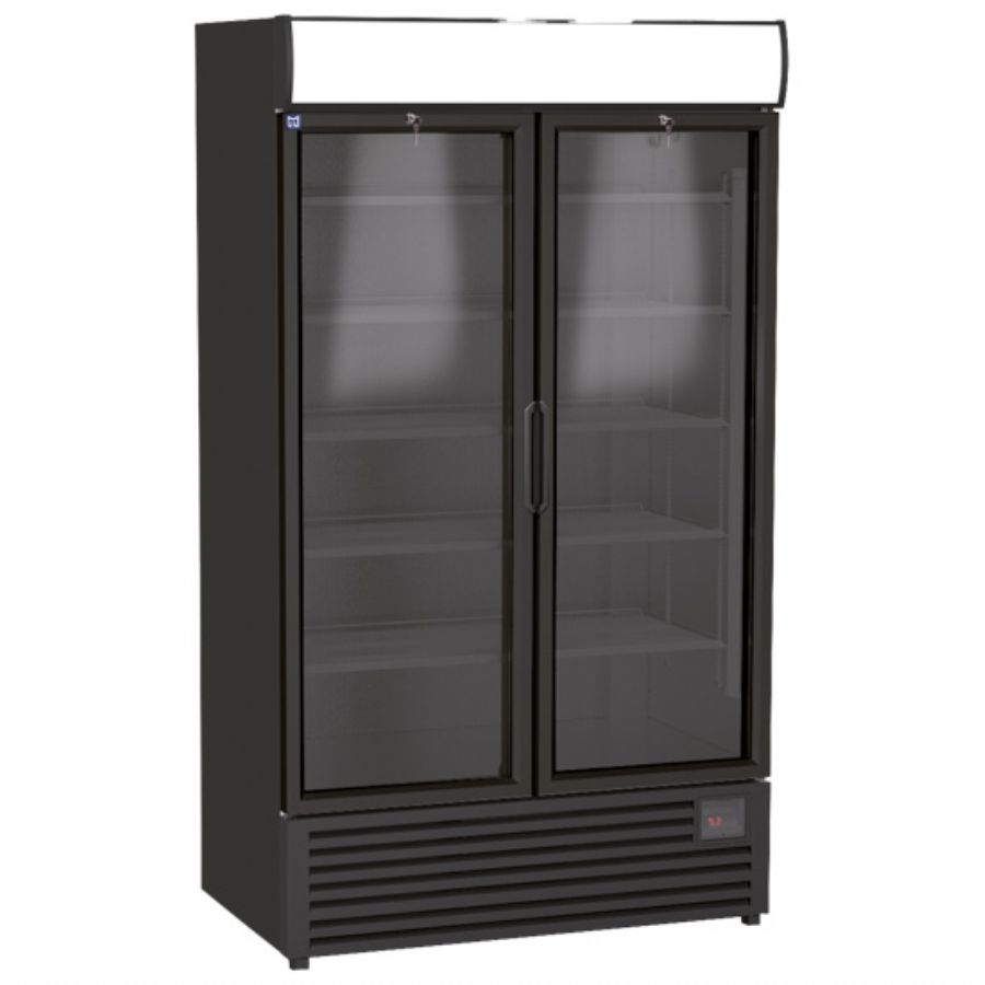 Armoire réfrigérée verticale noire 2 portes vitrées température +1/+9°C
