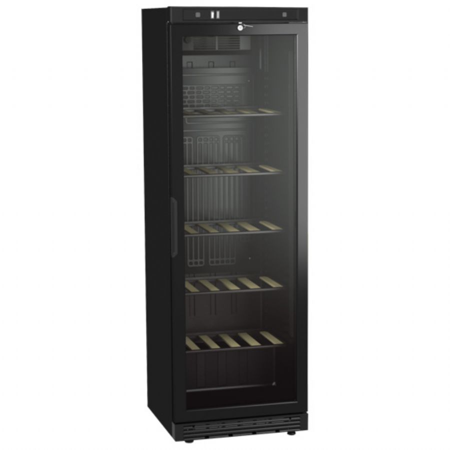 Présentoir à vins réfrigéré 1 porte vitrée noire avec plage de température +6/+20°C et capacité 373 L