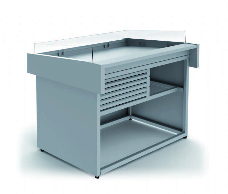 Étal à poissons réfrigérée positive 0/+2 °C avec 2,3m2 d'exposition - 2700x950x1000 mm