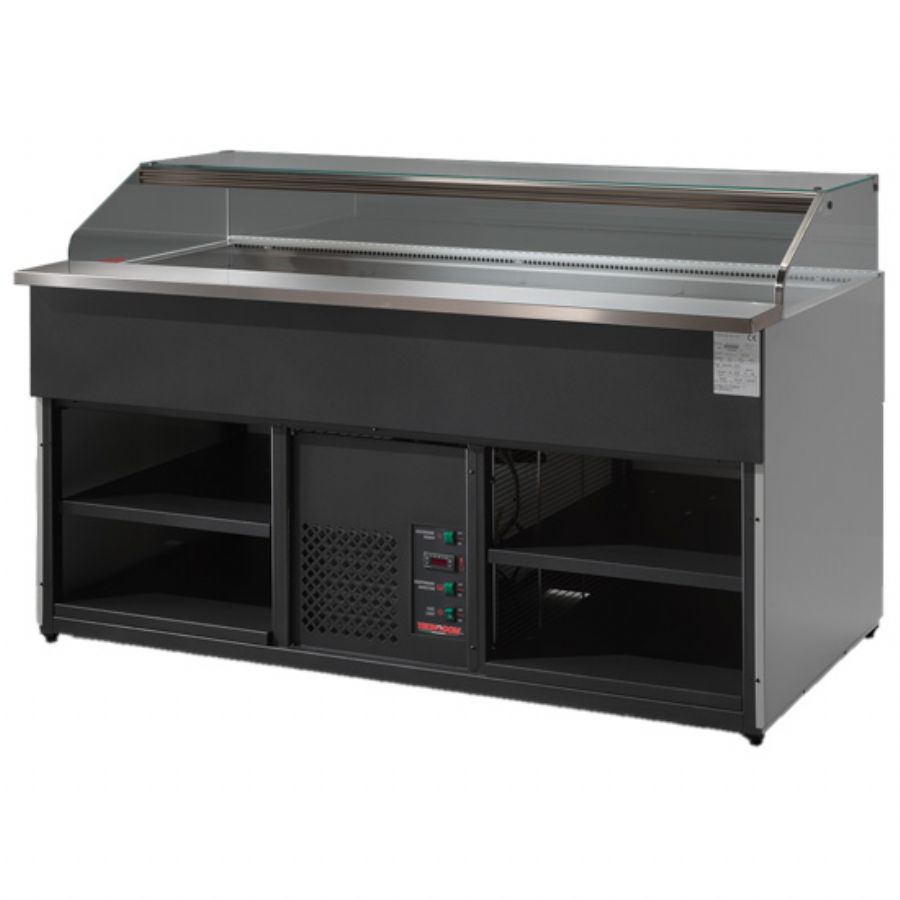 Vitrine comptoir réfrigérée plate noire avec 2 portes vitrées coulissantes - 1505x745x1209 mm