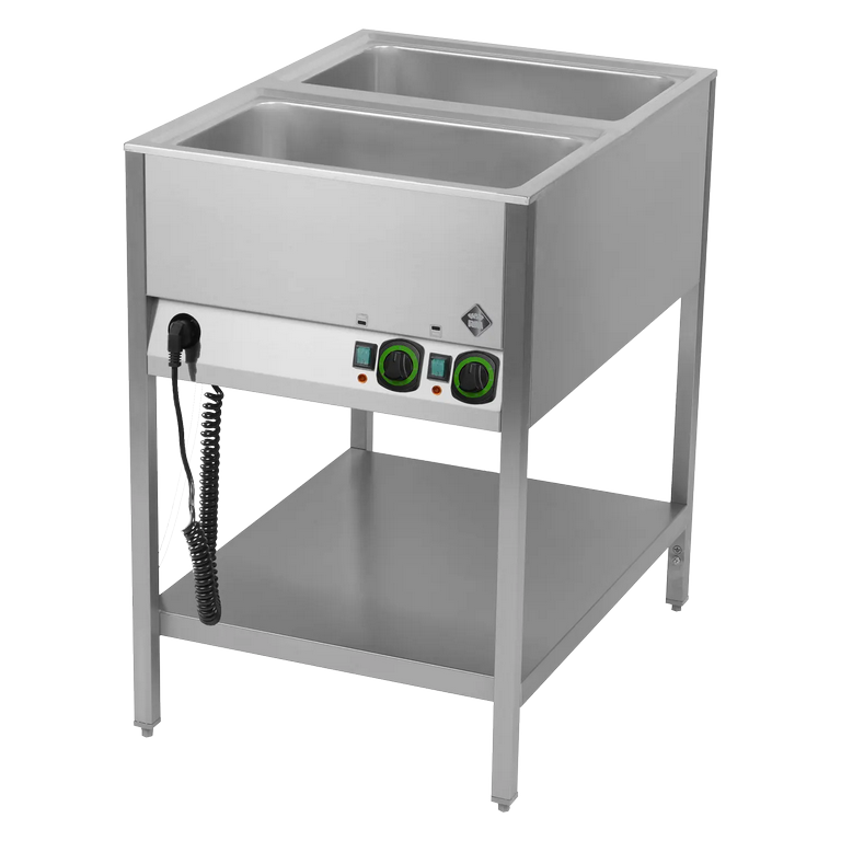 Bain marie pour cuisine pro stationnaire GN2-1/1 commande sur le, côté court étagère basse