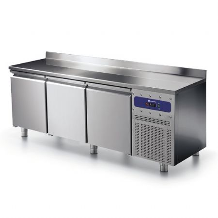 Table réfrigérée inox positive avec évaporateur ventilé - 3 portes - 339 litres - Avec dosseret - SN3201X