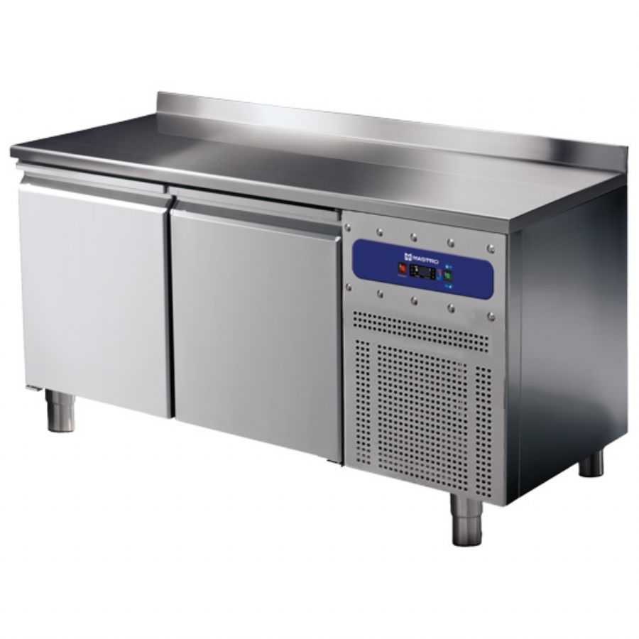 Table réfrigérée inox positive avec évaporateur ventilé - 2 portes - 228 litres - Avec dosseret - SN2201X
