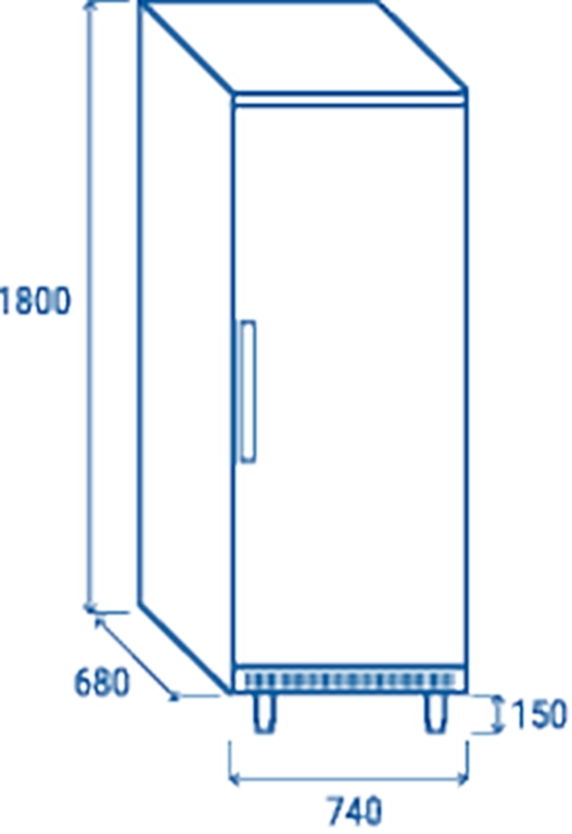 Dimensions : 740x680x1800 Dimensions intérieur (LxPxH) (mm) : 610x475x1460 Température : +2°C à +8°C Réfrigérant : R600a Contenant : 5 clayettes ajustables (600x400) Classe climatique : 4 Classe énergétique : BConsommation (kW/24h) : 0.99 Puissance (W) : 180 Poids (kg) : 88