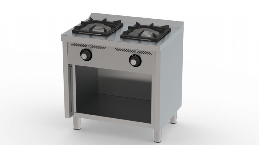 Fourneau à gaz professionnel sur placard ouvert avec 2 brûleurs 8,5 + 6,8 kW - 800x600x880 mm