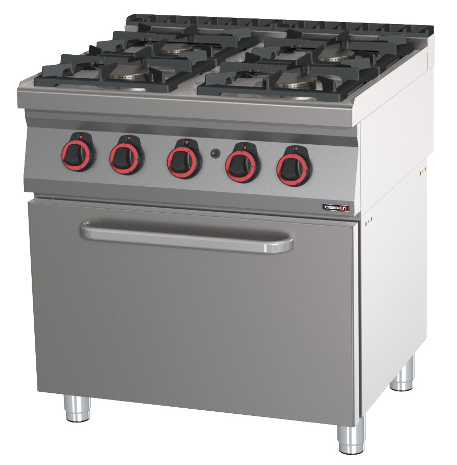 Fourneau professionnel gaz sur coffre avec 4 feux et four à gaz GN 2/1 - 800x700x900 mm