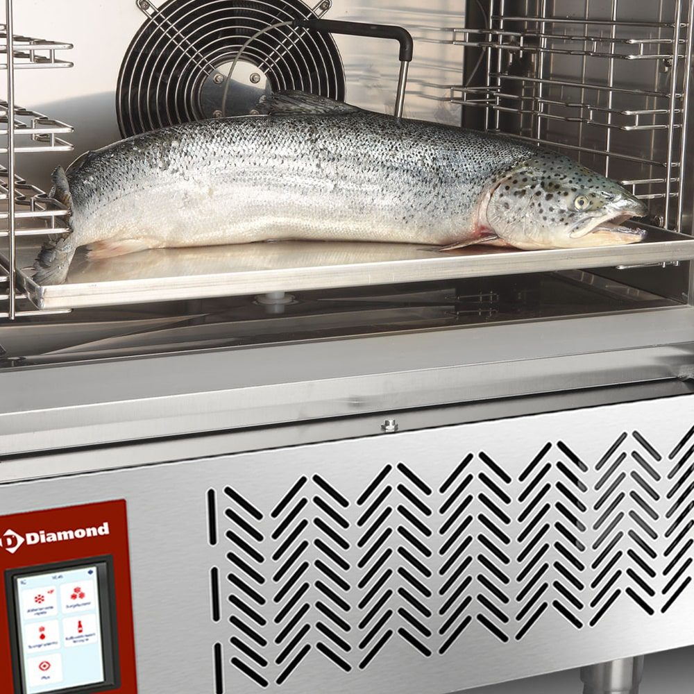 Le cœur de cette cellule repose sur un système de commande tactile de dernière génération. L’écran couleur de 5 pouces facilite une utilisation intuitive, avec un accès direct à des programmes personnalisables selon la nature du produit à refroidir. L’utilisateur peut choisir entre différents cycles selon la texture et la sensibilité des aliments : doux ou intensif, en fonction du besoin, avec la possibilité de gérer les cycles par minuterie ou par sonde à cœur. Cette flexibilité d’utilisation garantit une grande précision, tout en optimisant les temps de production.