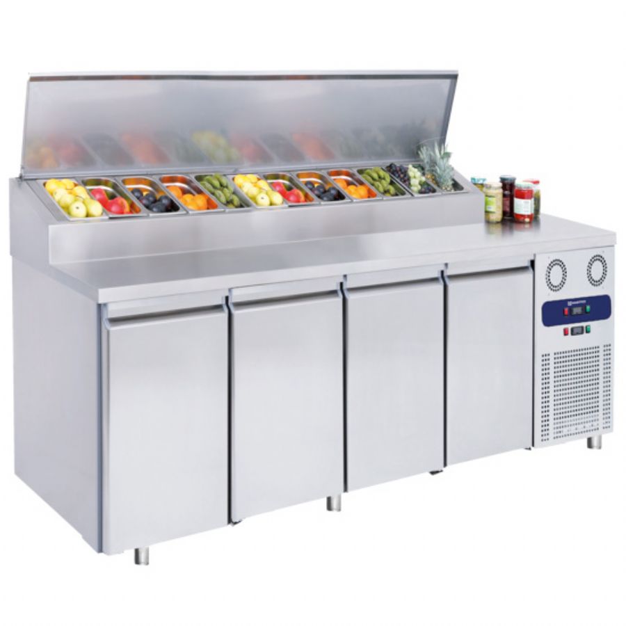 Table de préparation froide inox 4 portes GN 1/1 avec 9x GN 1/3 température -2/+8°C