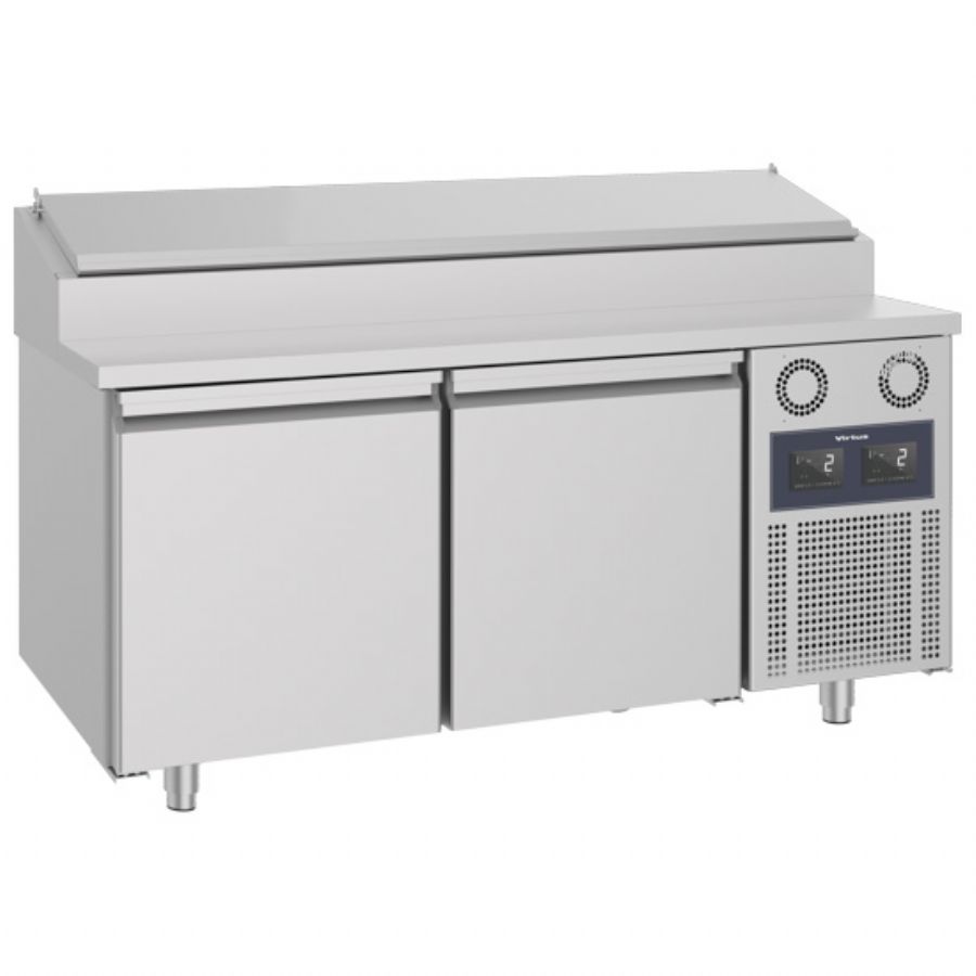 La table de préparation froide 2 portes VIRTUS répond précisément à cette problématique. Avec ses 8 bacs GN 1/3 h150 maintenus entre -2/+8°C, elle offre une visibilité immédiate sur vos garnitures tout en sécurisant la chaîne du froid. Le plan de travail profond permet un dressage rapide et ergonomique, tandis que le volume de stockage inférieur assure la Durabilité des équipements grâce à une construction pensée pour le rythme intensif des cuisines professionnelles.