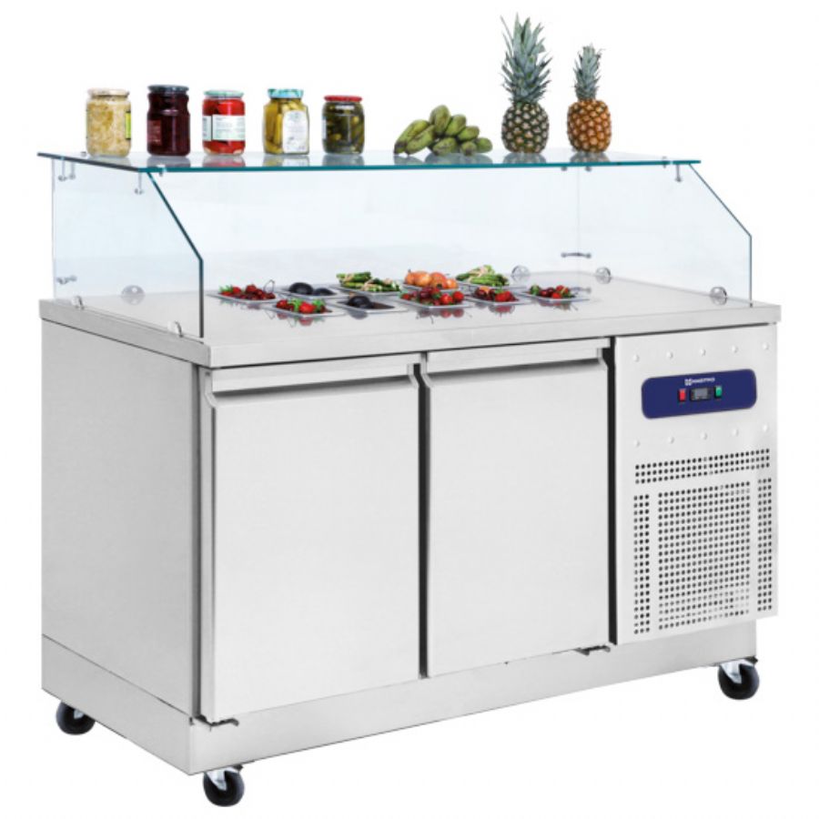 Table de travail réfrigérée positive avec 2 portes GN 1/1 et saladette bacs GN 1/3 - 1360x715x1080 mm