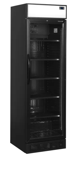 Réfrigérateur à boissons noir avec 1 porte vitrée à charnières - 595x640x1980 mm sur BBR CHR de la marque Tefcold de référence CEV435CP BLACK