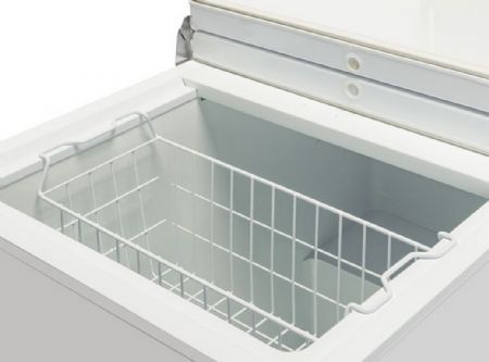 Congélateur coffre avec couvercle Flip-flop Refroidissement statique Dégivrage manuel Vidange de l'eau de dégivrage Faible consommation d'énergie Agent moussant cyclopentane : 65 mm Joint d'étanchéité remplaçable Serrure montée en standard Thermomètre numérique Paniers inclus : 1 Roulettes pivotantes standard