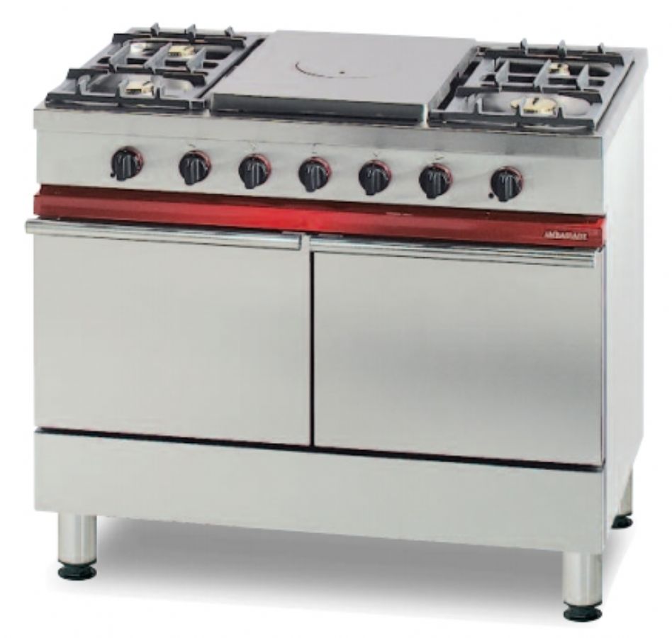 Fourneau gaz 4 feux vifs avec four électrique à convection GN 1/1