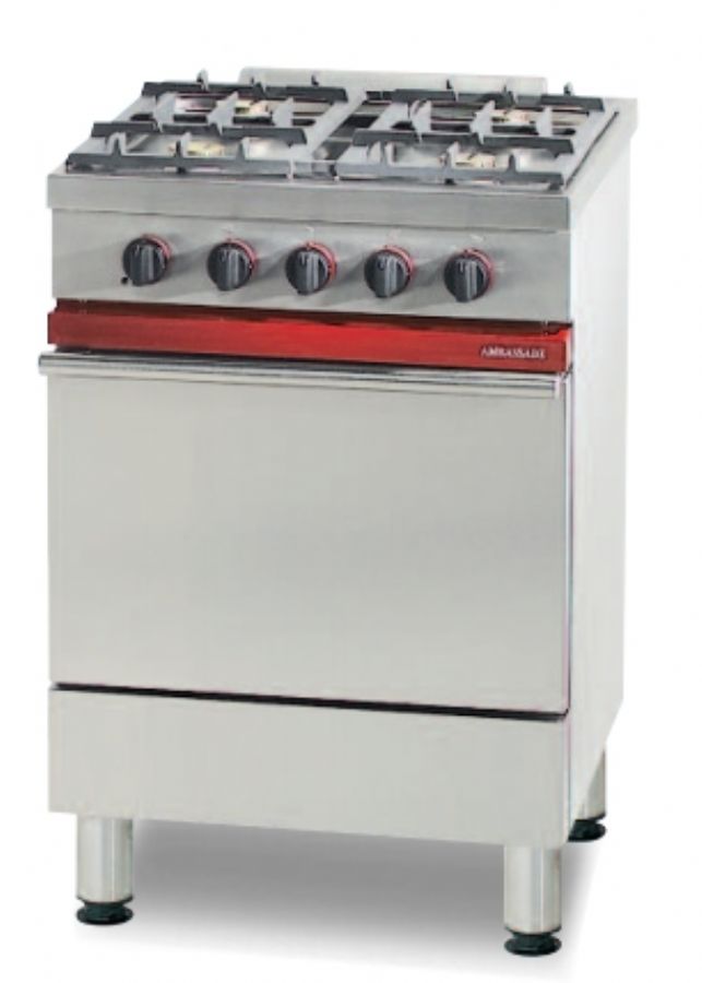 Cuisinière à gaz 4 bruleurs vifs sur four à gaz - 600x650x900 mm