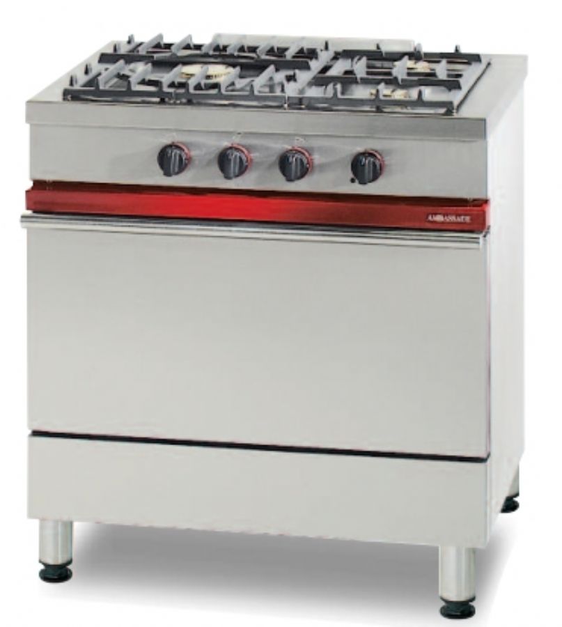 Fourneaux gaz 6 feux vifs avec four électrique avec placard ouvert - 1200x700x910 mm