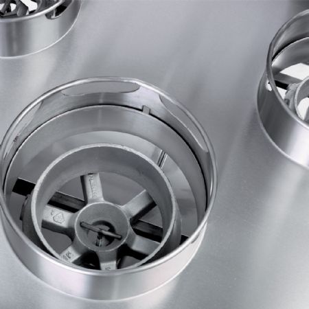 Plan de cuisson embouti, bacs de récupération inférieurs.