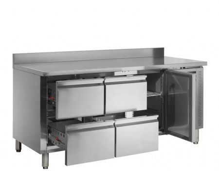 Table desserte réfrigérée inox 1 porte 4 tiroirs avec dosseret 417 L