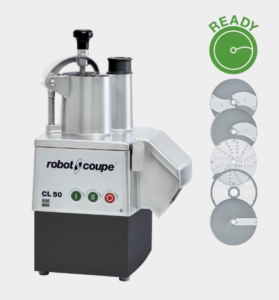 Coupe légumes professionnel noir 2 vitesses triphasé avec 5 disques inclus 150kg/h - 375 - 750 trs/min