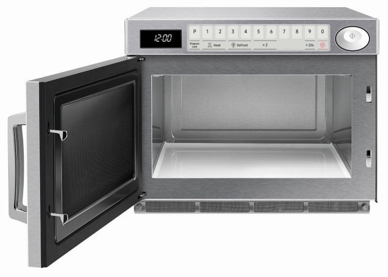 Le four micro-ondes professionnel Samsung CM1929A-2 a été conçu précisément pour ces contraintes de restauration commerciale. Sa cavité rectangulaire de 26 L permet d’accueillir des assiettes larges, bacs GN ou plats à emporter, tandis que la technologie BaseMax™ et les deux antennes tournantes en fond de cavité garantissent une diffusion homogène. Avec ses 3200 W et ses 5 niveaux de puissance, il offre des solutions adaptées aux opérations intensives en snack, hôtel ou restauration collective. Référence interne : CM1929A-2.