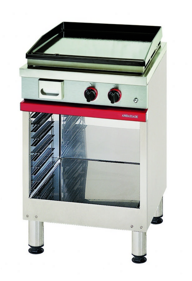 Plaque à snacker gaz en fonte surface lisse - 600x650x900 mm
