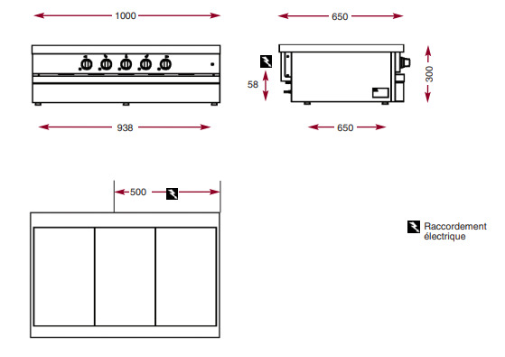 Cuisinière élecrique 5 plaques vitrocéramiques à poser - 1000x650x300mm