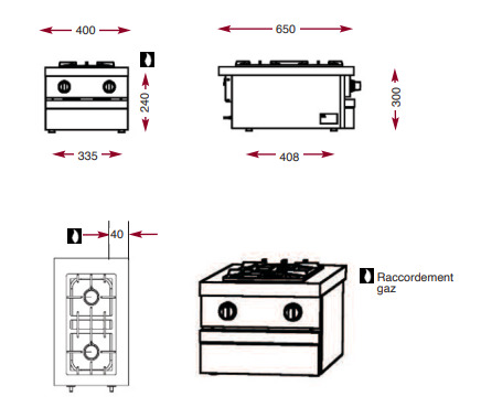 Cuisinière à gaz 2 bruleurs vifs à poser - 400x650x300 mm