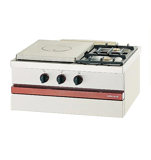 Les spécificités techniques de la Cuisinière à gaz 2 brûleurs et 1 plaque coup de feu incluent : deux brûleurs de 3 kW, une plaque coup de feu en fonte de 400 x 500 mm, et une sécurité par thermocouple. Taille compacte et performance élevée font de cet équipement de cuisson au gaz un choix de prédilection pour les structures cherchant un accompagnement tout au long du parcours.