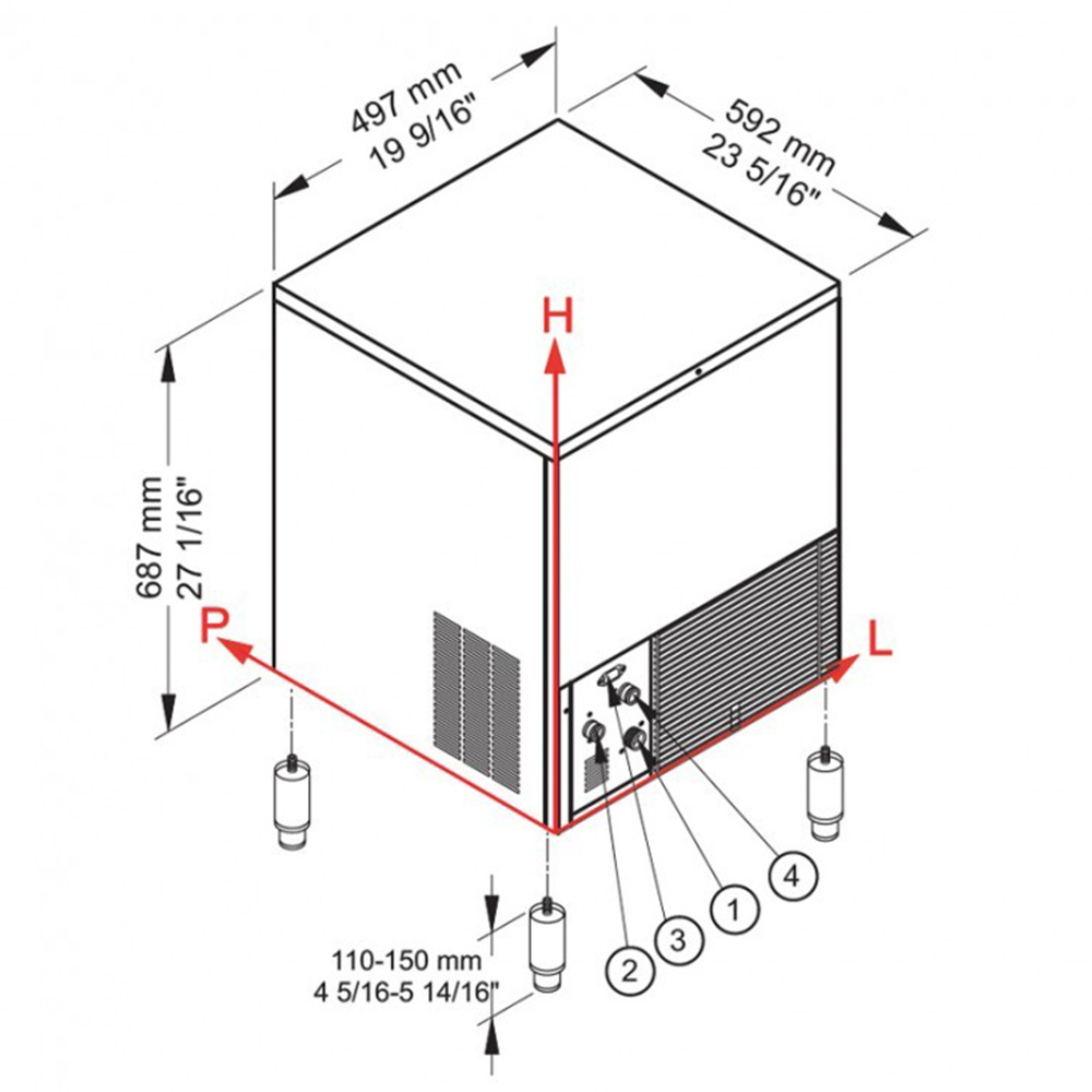 En exploitation, le système à spray avec gicleurs en laiton limite les effets du calcaire et réduit les interventions techniques, ce qui compte quand le personnel n’est pas spécialiste. Le timer électronique avec système automatique de lavage « AWS » simplifie l’entretien courant et améliore la régularité de la qualité de glace. Les 4 vérins de réglage facilitent l’alignement sous comptoir, la consommation contenue (0,34 kW, réfrigérant R290) aide à maîtriser les coûts, et la gamme Diamond Promo offre un bon compromis entre budget et fiabilité, tout en restant dans le cadre des normatives CE en vigueur.
