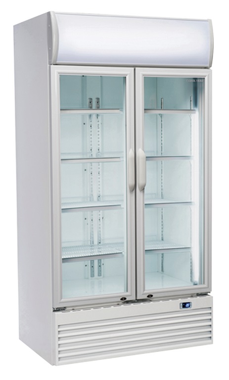 Réfrigérateur positif +1°C à +10°C blanc pour boissons 2 portes vitrées + panneau publicitaire 800L - 1000x730x2035 mm