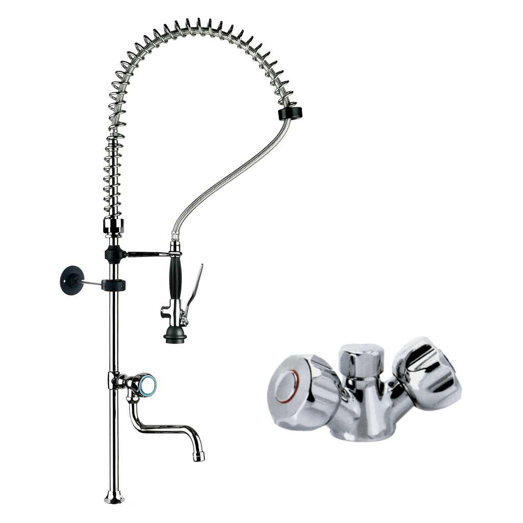 Ensemble douchette avec mélangeur monotrou à croisillons et col de cygne - DP607