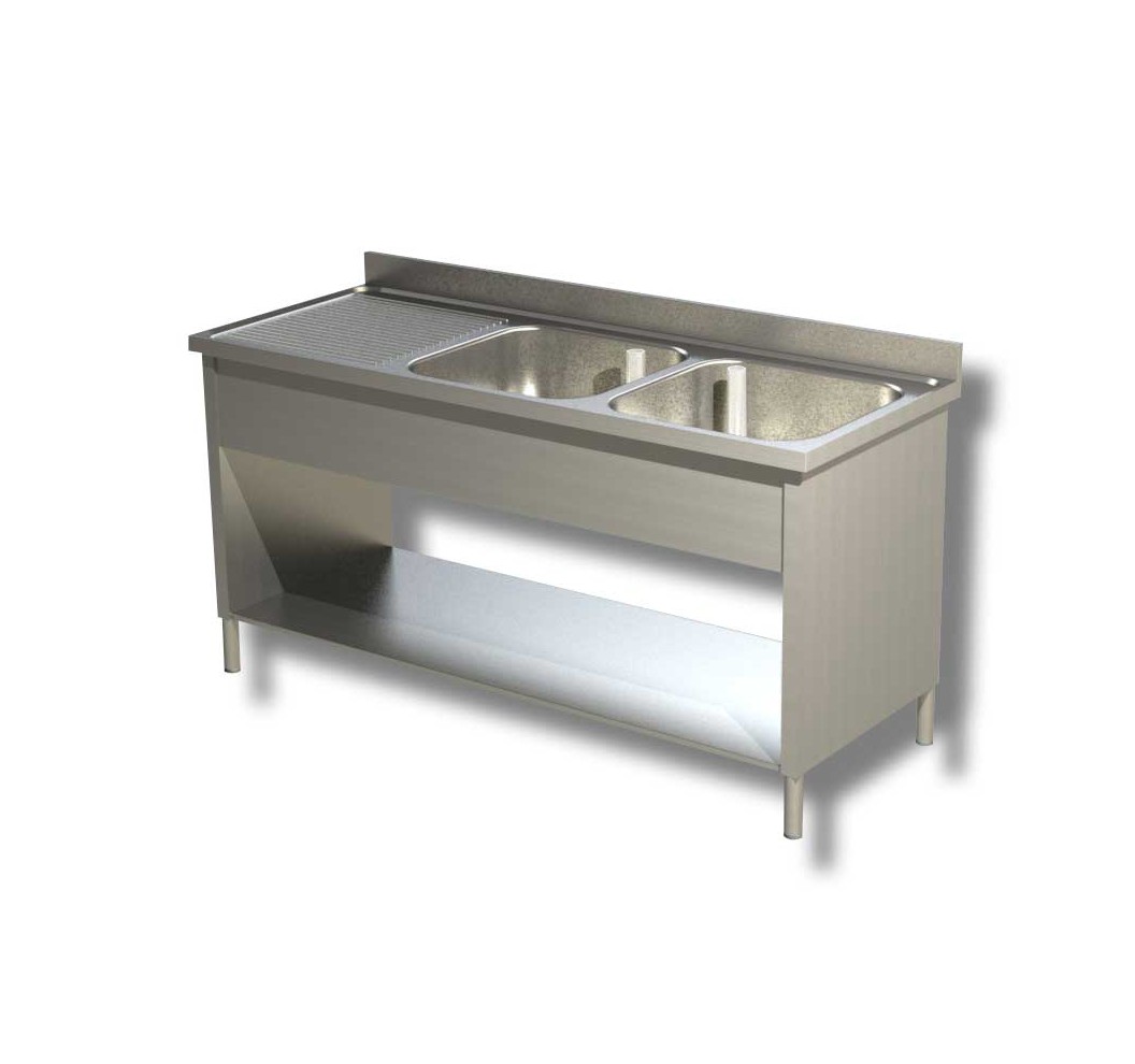 Plonge avec étagère 2 bacs à gauche - 1600x700x850mm