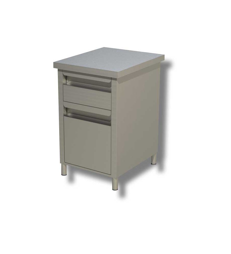Bloc de 2 tiroirs en inox - 500x700x850 mm