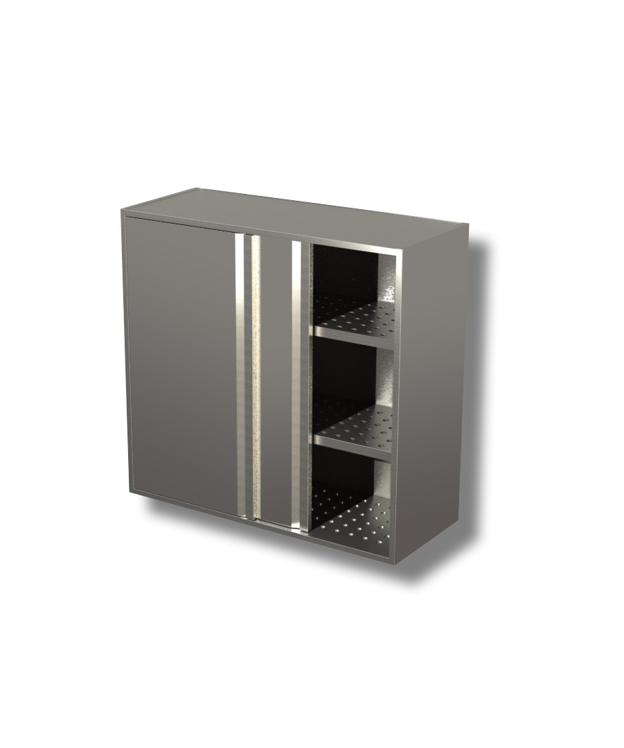 Placard inox 430 mural avec 2 portes coulissantes et 2 étagères perforées
